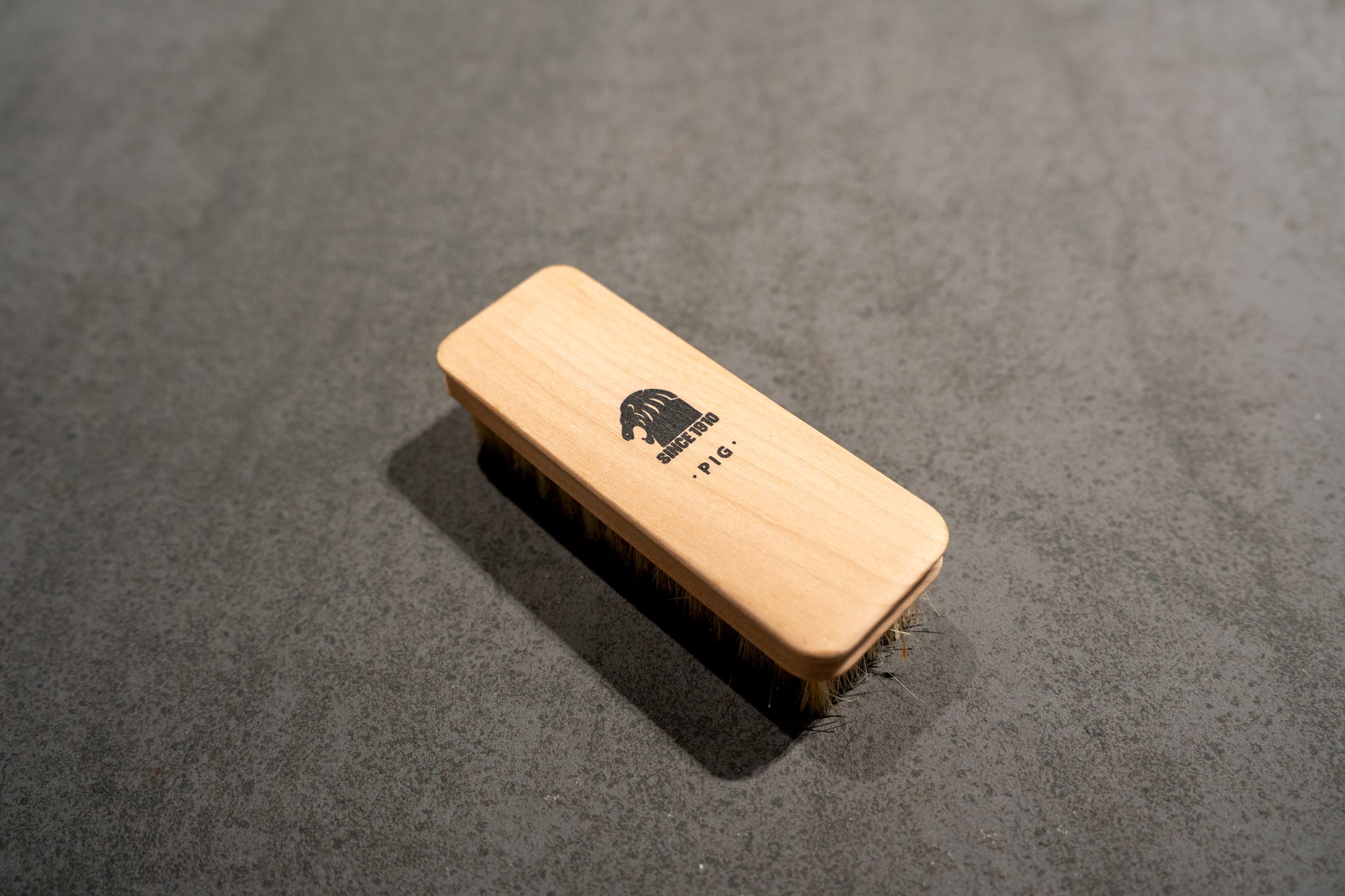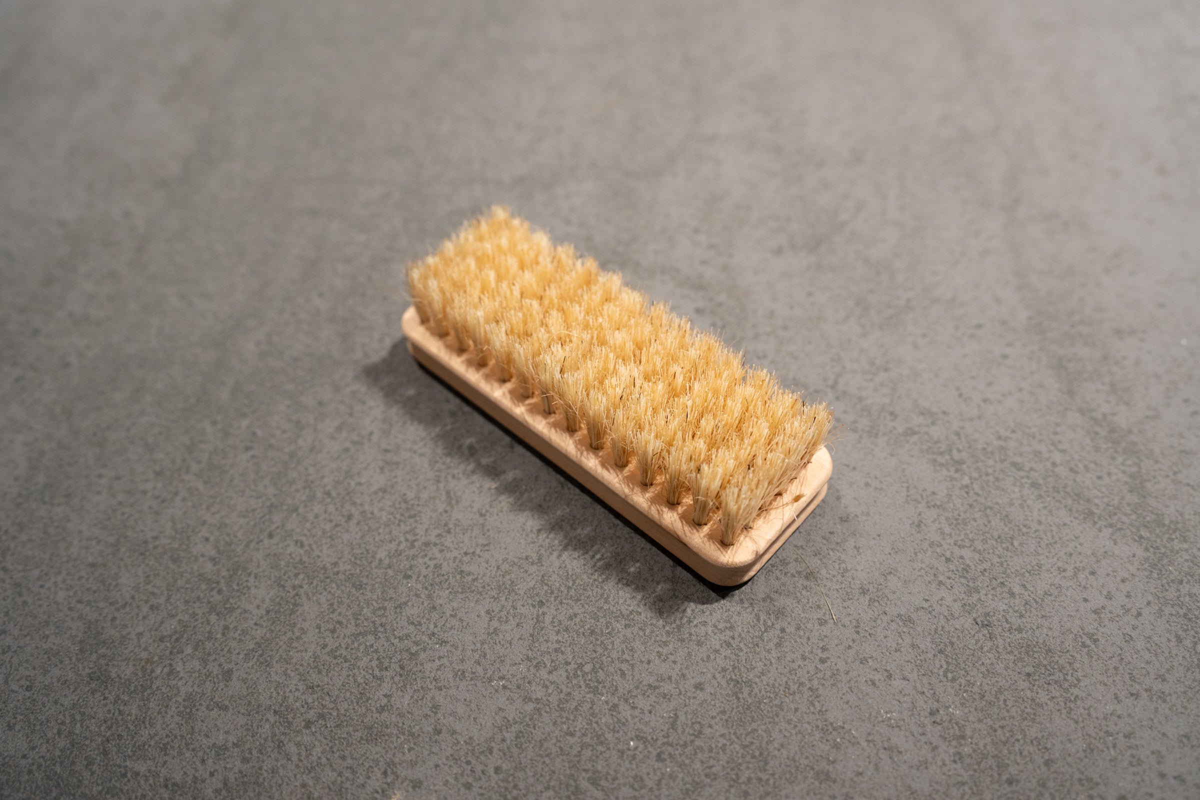 靴クリーム塗り伸ばし後のブラッシングに適した豚毛ブラシ。