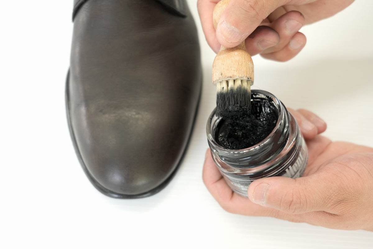 革靴へ潤いや光沢を与えながら、補色もできるため効果的です。