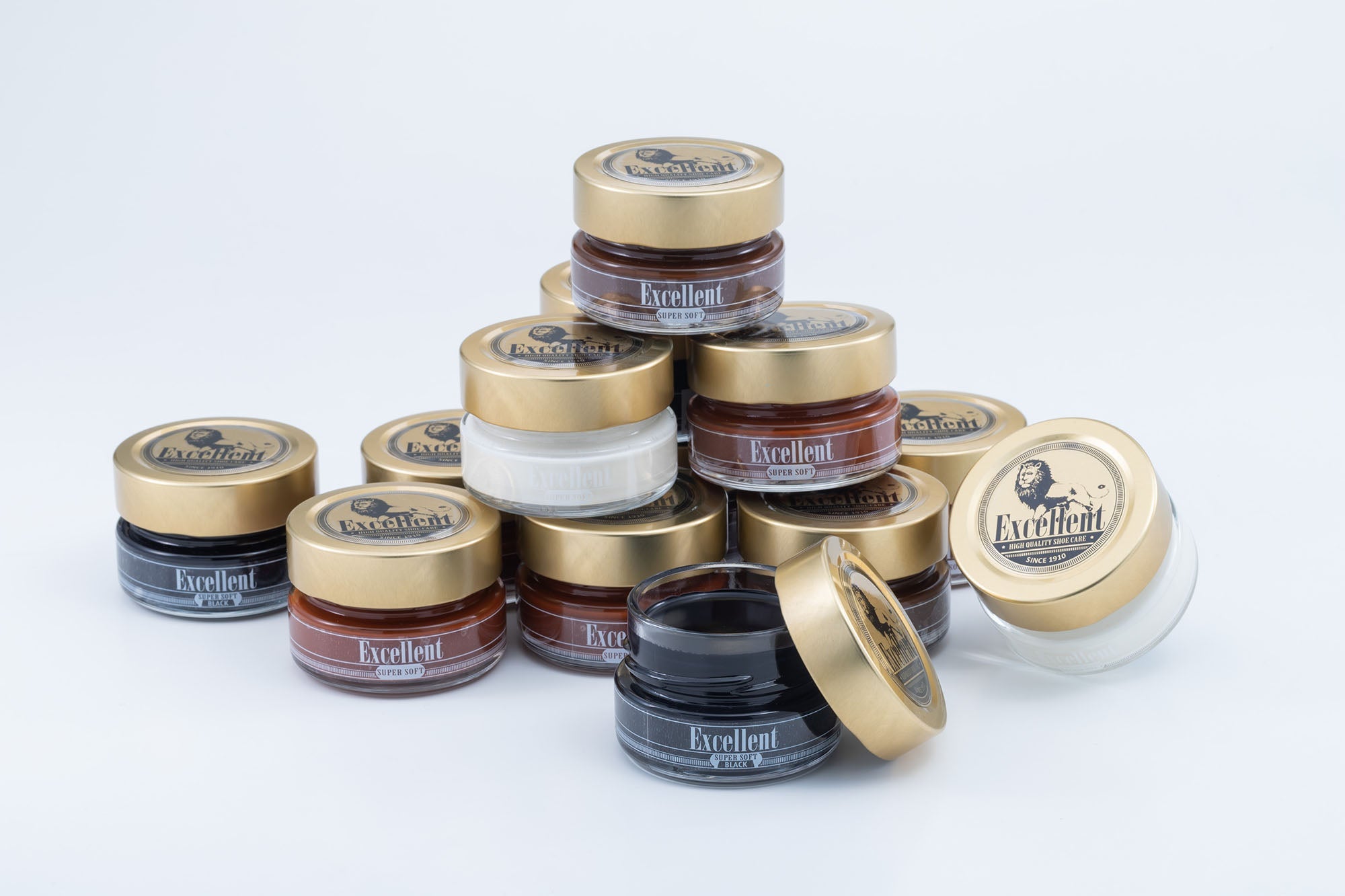 容量はエクセレントクリームミニの約1.5倍。天然カルナバワックスなど高級ワックスを配合した乳化性靴クリームは、革靴に潤いを与えながら、革本来の自然な光沢を生み出します。