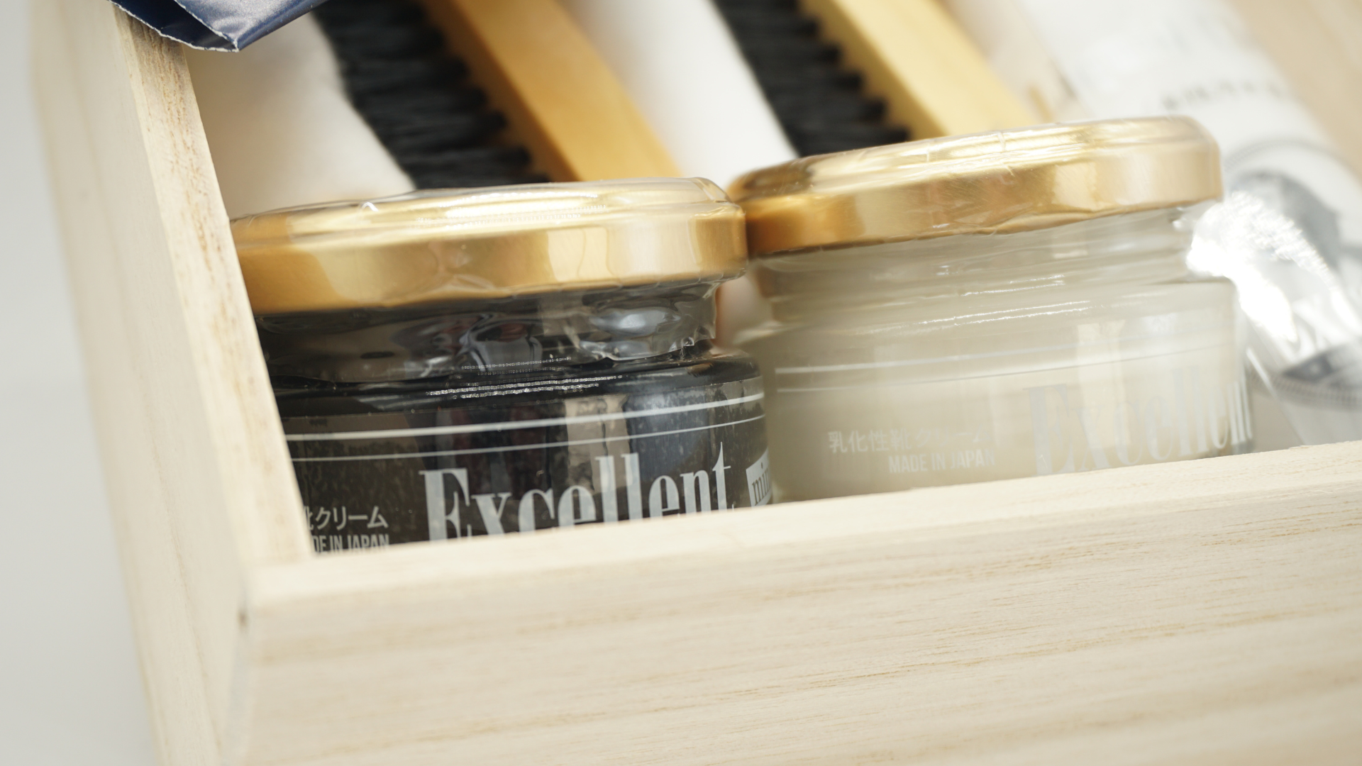 エクセレントシューケアボックスは、「汚れ落としから、保湿、鏡面磨き」まで、靴磨きの全ての工程を行えるセット品です。靴磨きが好きな方はもちろん、これから始めてみたい方、靴磨きが好きな方へのプレゼントとして最適です。
