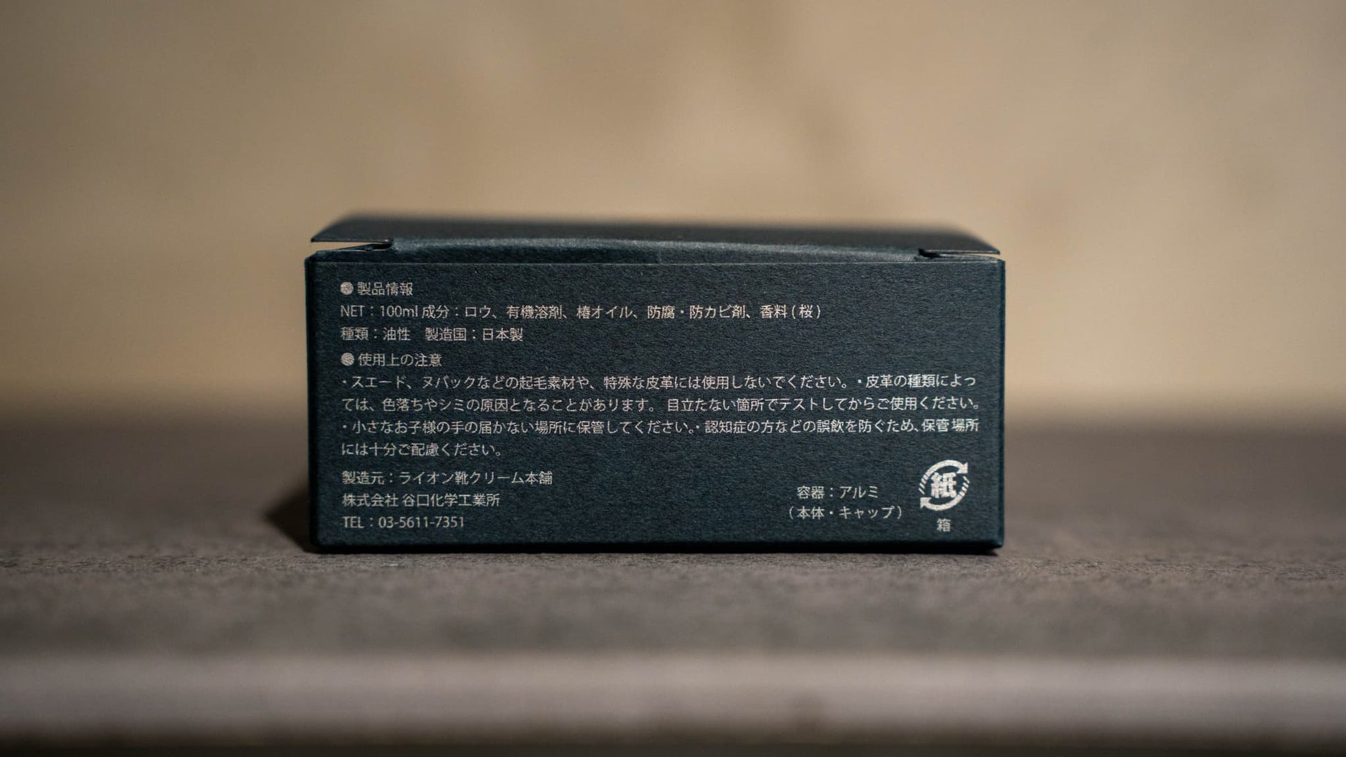 油分には浸透性と抗酸化作用に優れた椿オイルを採用し、ベタつかず革にすっとなじみます。