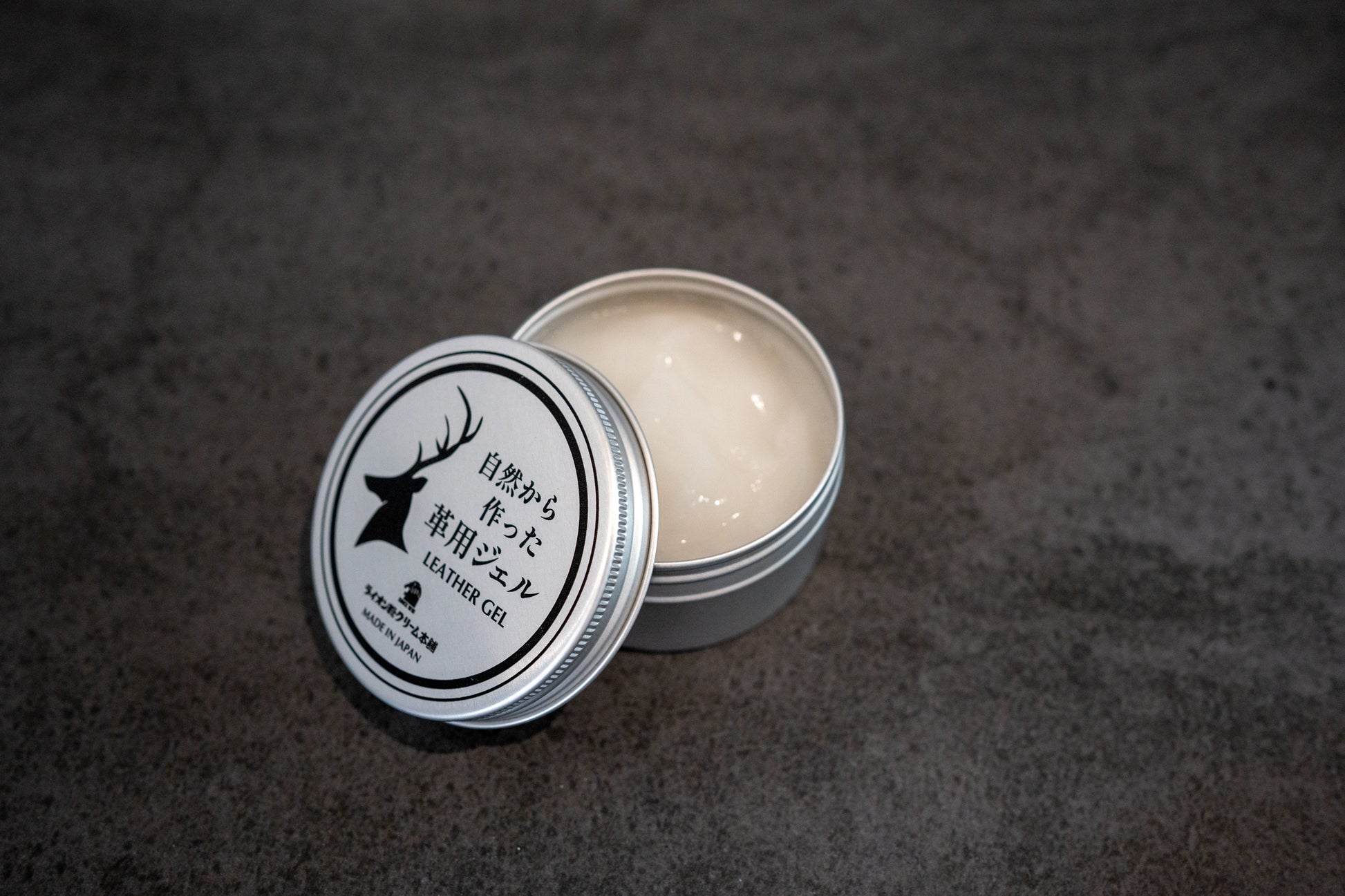 自然由来の成分で製造した、革にも環境にもやさしい革用保湿ジェルです。