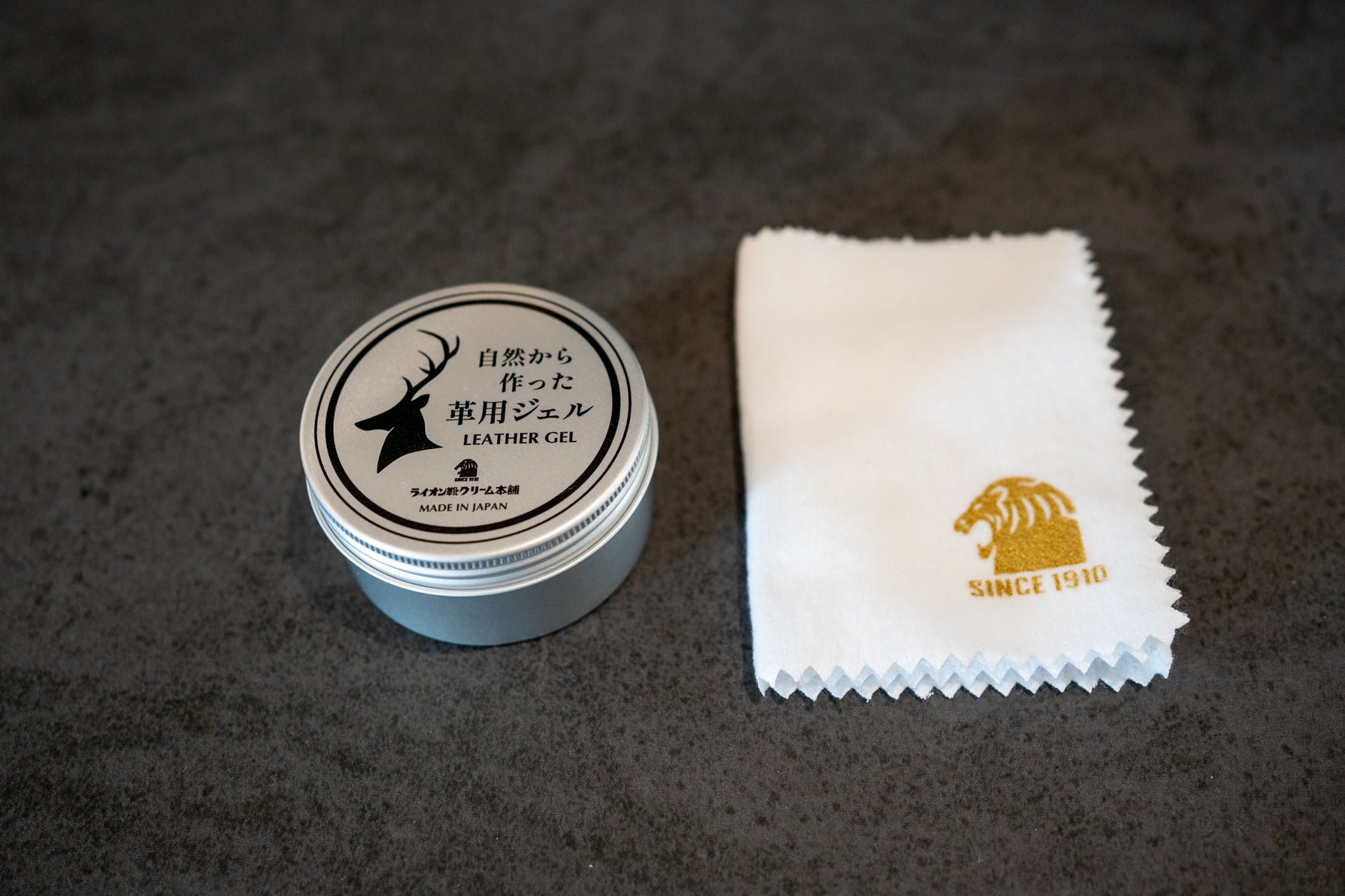 ケアの効力そのものは「革オイル」が強力ですが、その反面デメリットも生じやすく、それらを解消しつつバランスを整えた製品が「革用ジェル」です。