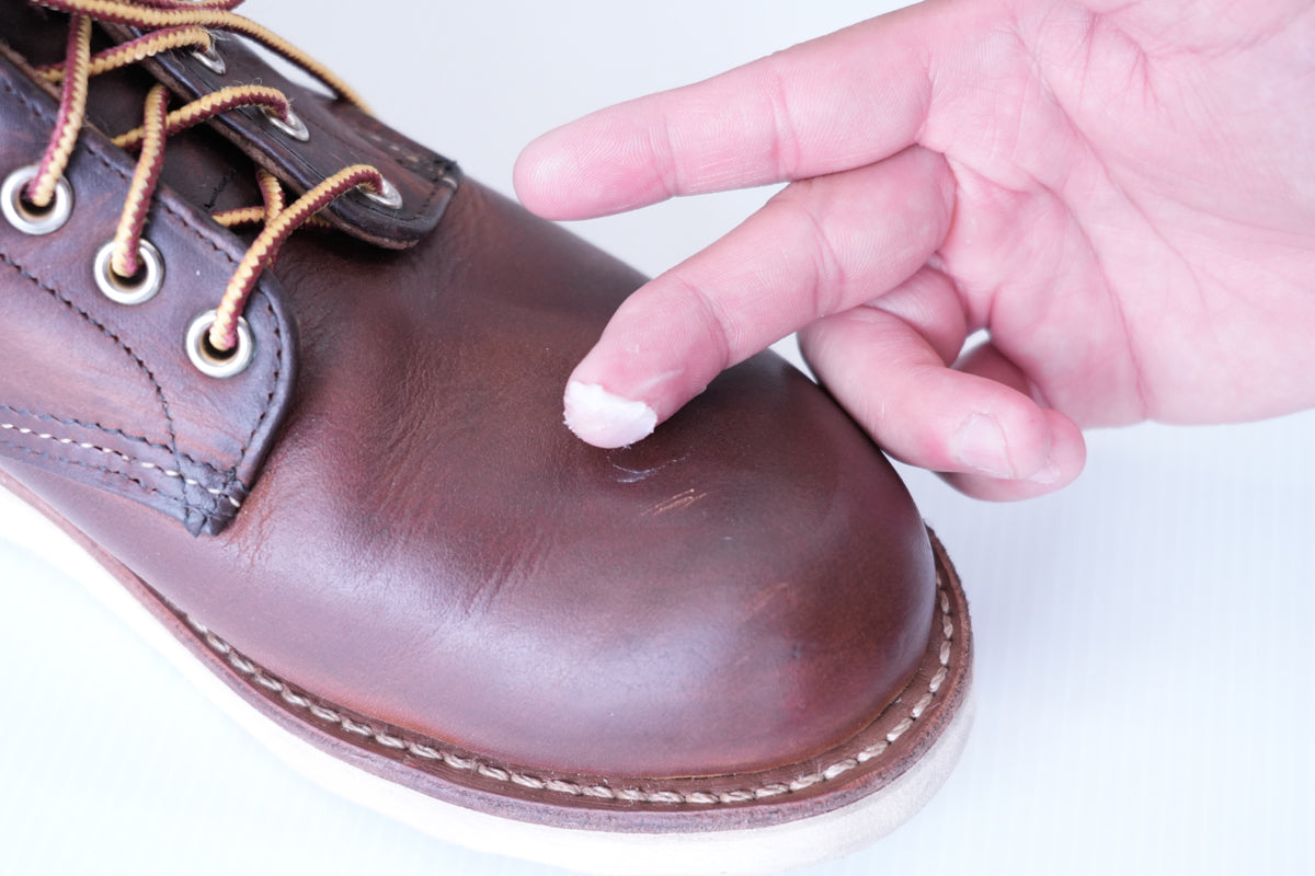 ただし油分100%のため、油ジミにより色を濃くしたり、柔軟性が上がることから型のついている革製品(ビジネスシューズなど)を型崩れさせてしまうなどの弱点があります。