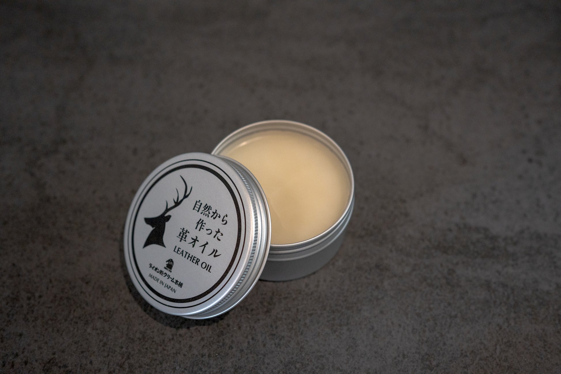「自然から作った革オイル」は油分100%の固形オイルで、革に柔軟性を与えたり、撥水効果をもたらすことができます。