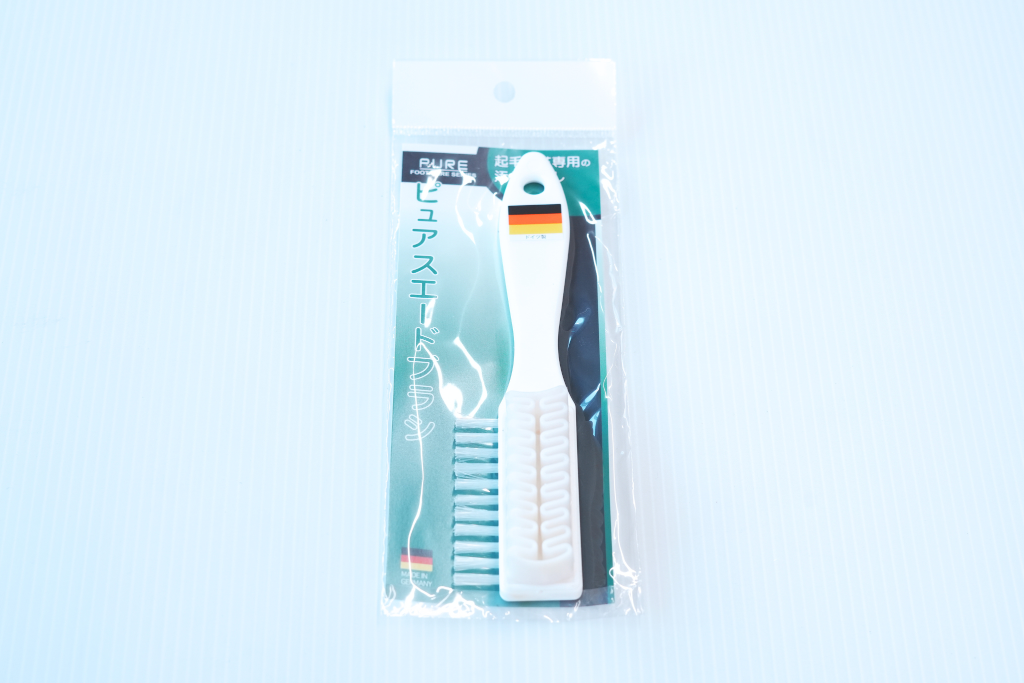 起毛革(スエードなど)の汚れを落としながら、毛並みを整える専用ブラシ。